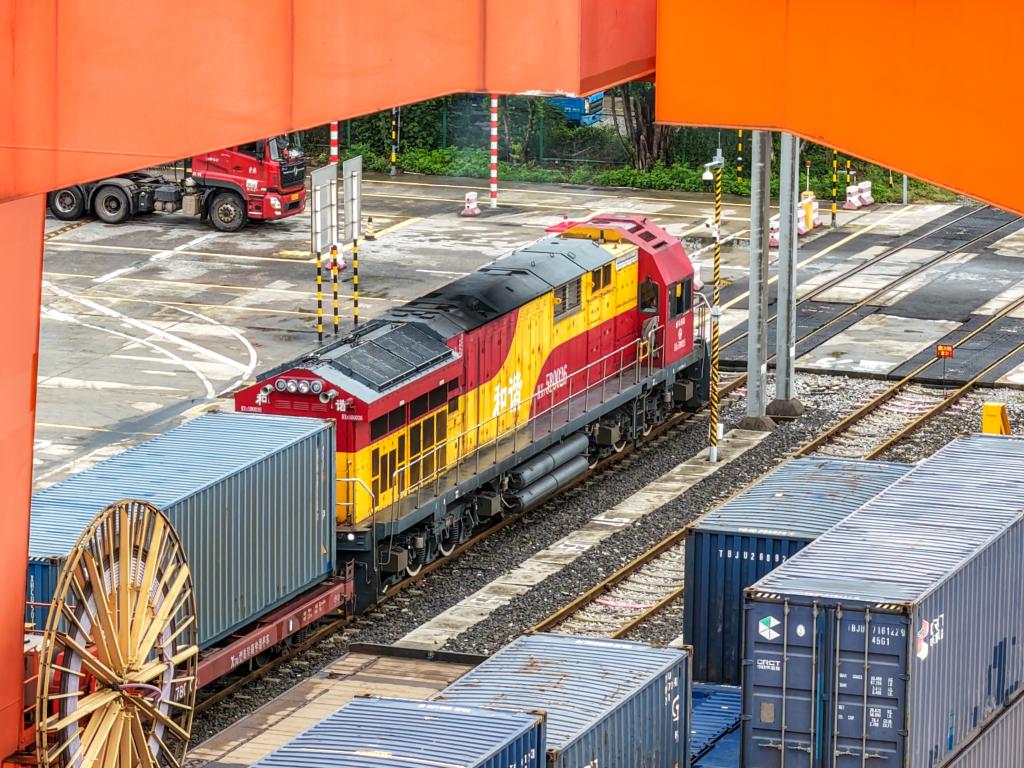 据重庆铁路物流中心统计,2025年1月至8月,重庆中亚班列去程开行35列,发送箱量超3000标箱,发送货值近6亿元。